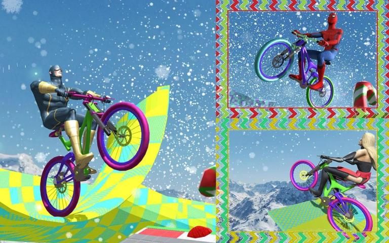 все супергерои доступны в гараже как супермен готов к полету и ездить на BMX денщик, сведет все герои флэш-супергероя покажет XTREME быструю скорость и верхолаз будет увернуться препятствия и выполнять экстремальные удивительные трюки, как Гоку. опции настройки также доступны в этой игре вы можете выбрать желание Bmx велосипеда и герой, а также вы можете покрасить в BMX гаража и использовать в уровнях.