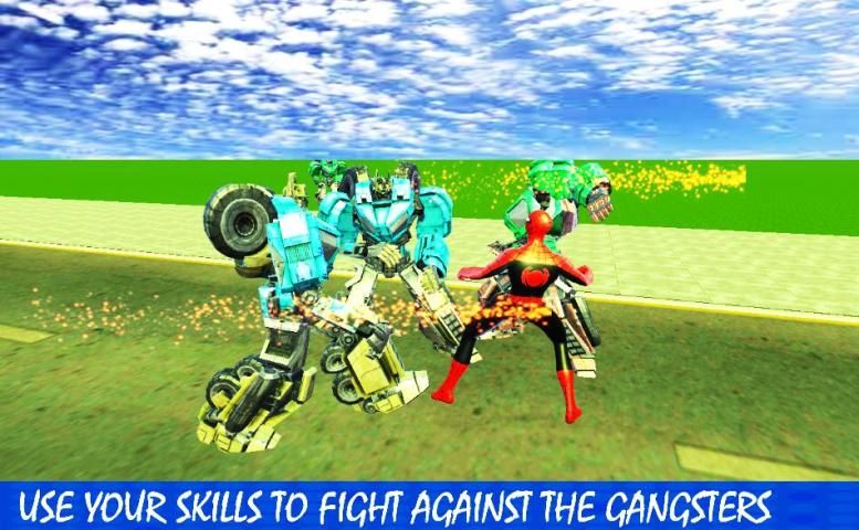 Будь паук герой в городской битвы, чтобы бороться, как фантастика Супер герой - Ваш город подвергся нападению преступных и злых роботов. Будьте готовы к войне против преступников и злых роботов истребитель и стать героем и спасителем города. Вы можете играть как паук герой с супер навыками власти, где Паук как символ супер драки героя и поймать зло и Transform роботов. Ваш гигантские, мощный паук герой прыгать в город и погоня гангстеров роботов, чтобы убить их, которые приходят в ваш город и вызывая бедствия. Так безопасно ваш город от злых и гангстерских мафиозных роботов.
