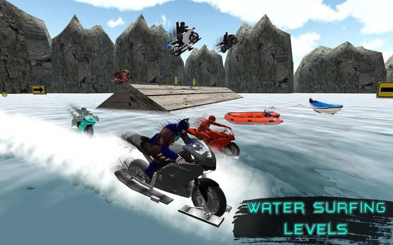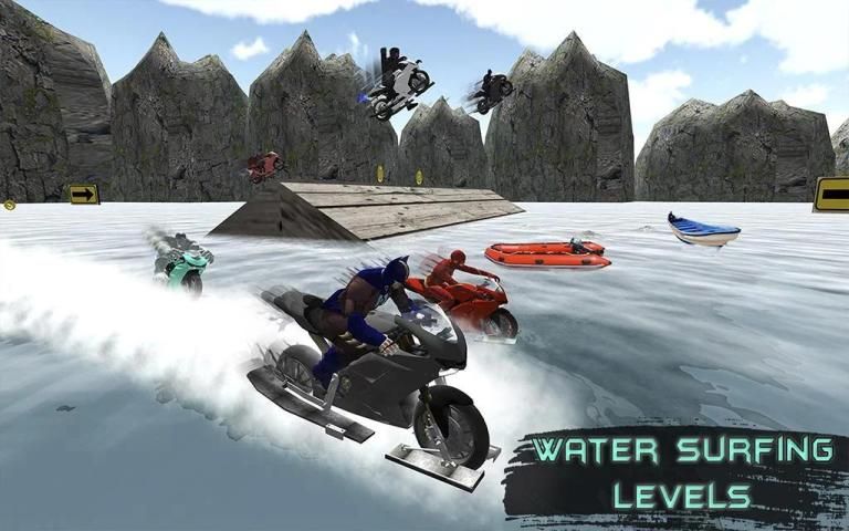 • гонка на воде с реалистичным трансформирующим велосипедом с тяжелым велосипедом и трюком