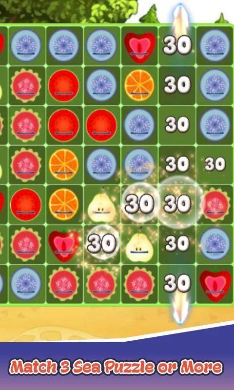 при подключении более чем 3 скрипящий Фрукты вы получаете бонусные баллы, но вы также можете получить много различных подталкивания как выскакивают, которые делают фантастическую давку на экране и молнии, чтобы разбить специальные части игры все, что вам нужно, это подключить 3 или больше фруктов.
