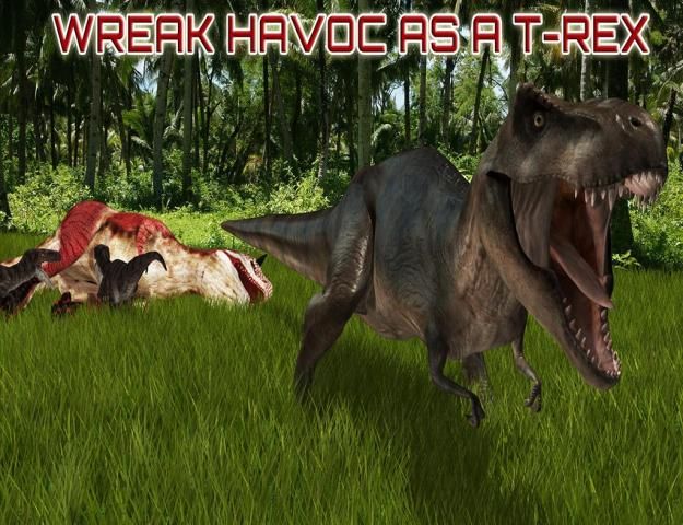 Бегать по джунглям чеканка и нападения других животных. В игре есть удивительные анимации и углы камеры, которые вы можете контролировать, как зверя T-Rex.