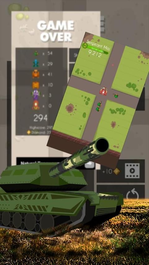 Control your tank and fires machine gun, laser gun, heavy cannon, ... at the enemies. The tank is protected by a force field, so it can "catch" the enemy shells, preventing the damage to the base.