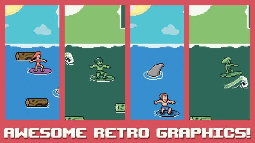 Tappy Surf является простой, но захватывающей игрой с УДИВИТЕЛЬНЫМ PIXEL ART !!