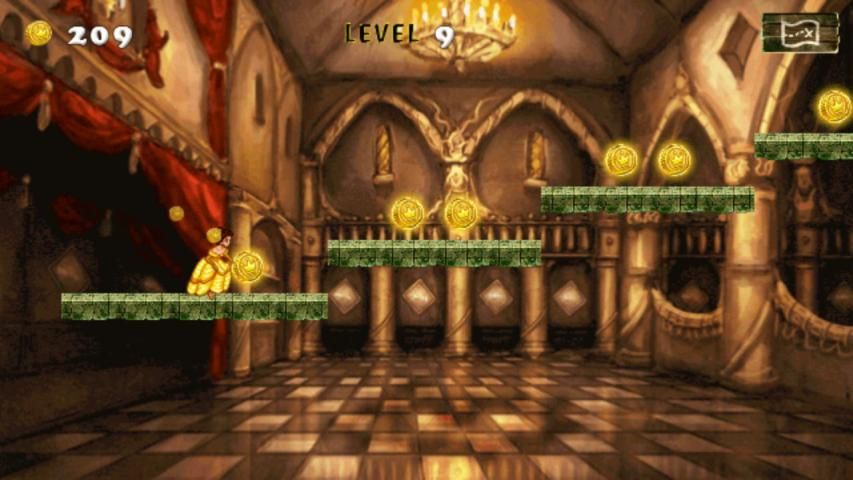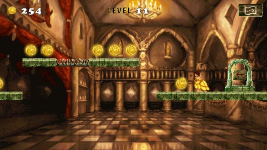 "Зверь! ЗВЕРЬ "закричала она. Ужасное смотрит зверь нападает на замок. Принцесса Belle работает за свою жизнь. Для того, чтобы быть в состоянии выжить, ей нужно, чтобы забрать ее принадлежности и некоторые сокровища замка. Избежать удара препятствиями уклонение и прыжки. Собирать золотые монеты, как вы лихо через уровни.