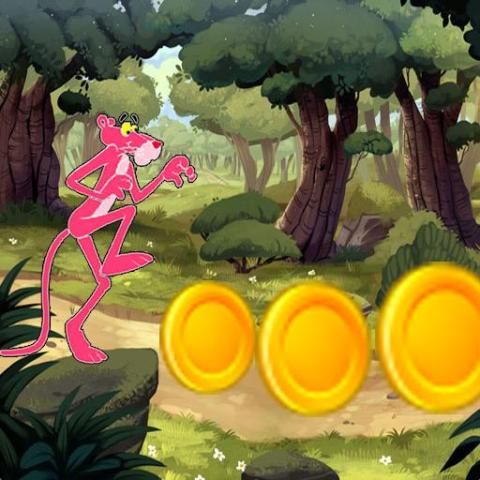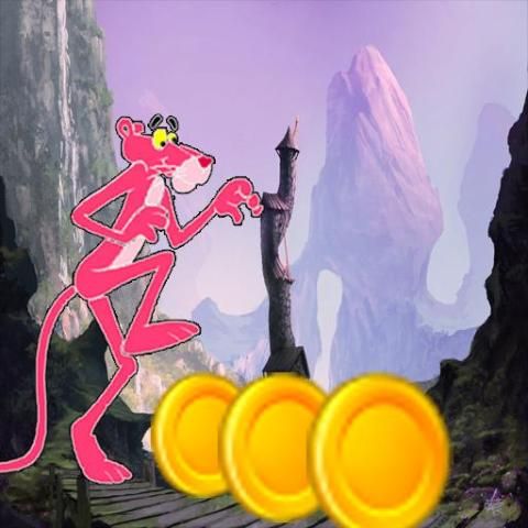 Помощь Розовая пантера, чтобы дойти до конца игры, собирая монеты и избегая препятствий