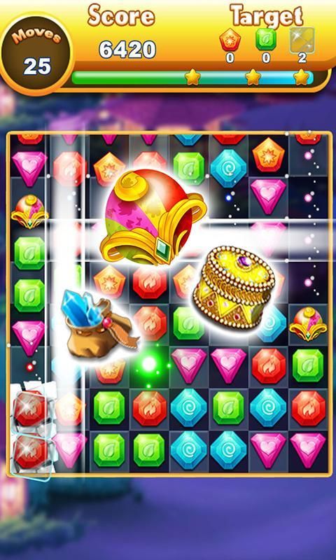 Обмен или Размах, чтобы сделать матч 3 или более драгоценных камней и увеличить свои сокровища, играя все уровни. Постарайтесь, чтобы получить 3 звезды на всех уровнях.