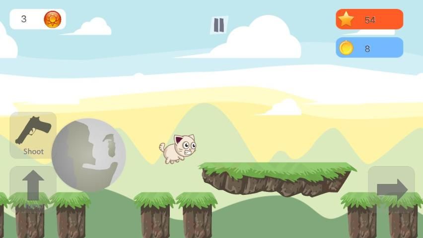 Вы начинаете как милый кот, вооруженный пистолетом надежный позволяет снимать и уничтожать приближающиеся валуны в то время отчаянно опережающего тех, кто за.