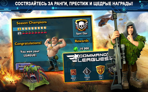 - Атакуйте базу противника и защищайте свою базу, используя пехоту, танки, вертолеты и бомбардировщики: к вашим услугам все виды войск!
