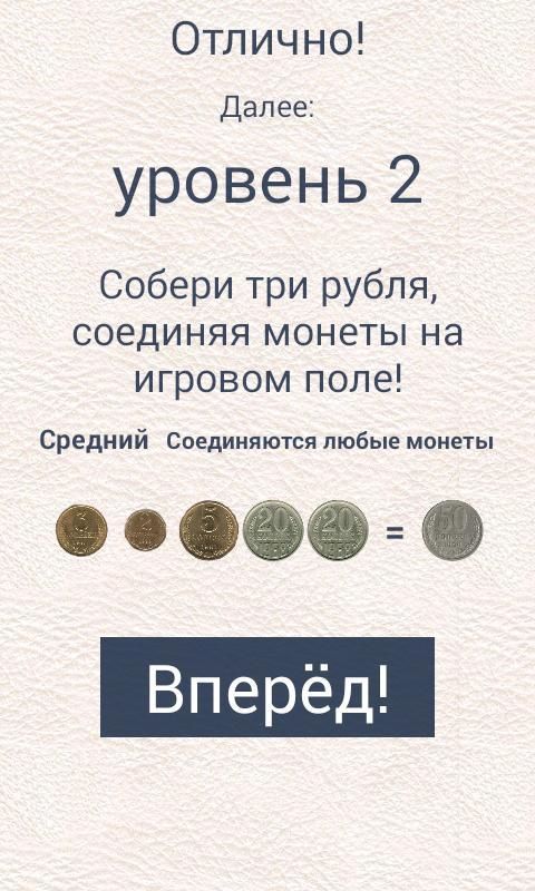 Соединяйте соседние монеты, чтобы получить монету большего номинала.