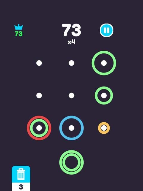 В Tic Tac колец вы должны соответствовать цвету кольца в любом направлении. Есть большие и меньшие типы колец, которые вы должны разместить на слоты (точек) на экране, или отказаться от них. Матч несколько цветов вместе или consecutiely, чтобы заработать очки COMBO!