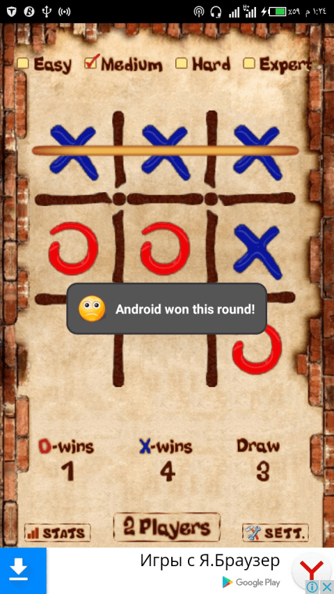 Tic Tac To 2017is free classic puzzle game also known as "nougats and crosses or sometimes X and O". Our free Tic Tac To 2017game offers: ✓ 4 different game levels (game difficulties) ✓ 2 players game (multiplayer) ✓ different themes (game skins) ✓ game statistics The Tic Tac To 2017 game is a game for two players, called "X" and "O", who take turns marking the spaces in a 3×3 grid. The player who succeeded in placing three respective marks in a horizontal, vertical, or diagonal row wins the game. The Tic Tac Toee 2017 is a great way to pass your free time whether you're standing in a line or spending time with your kids. Stop wasting paper and save trees. Because of the simplicity of Tic Tac To 2017, it is often used as a pedagogical tool for teaching the concepts of good sportsmanship and the branch of artificial intelligence. Start playing Free Tic Tac To 2017game on your Android device. Get Free Tic Tac Toe now and let the fun begins!