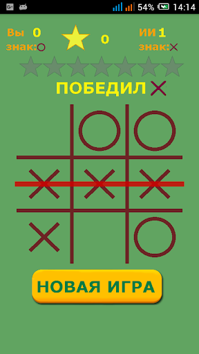 Игрок, которому удается разместить три своих знака в горизонтальном, вертикальном или диагональном ряду, выигрывает игру.