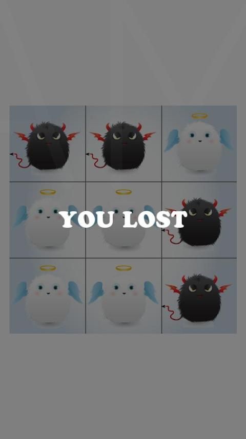 крестики-нолики с одно- и многопользовательских функций. Наслаждайтесь случайным ангельский игры - дьявола против ангела. Развлечения для всей семьи