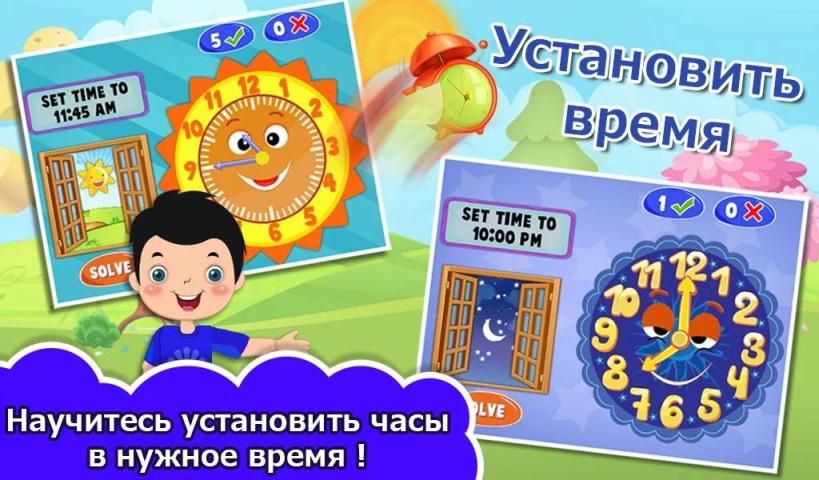 Tick tock, it's time to learn and tell time. This game helps your kids learning how to read an analog clock and how to tell time. Select your favorite character and learn the basics of telling time, then practice with different interactive clocks. See target time on display and use your finger to move the current clock and see if you are correct. It's unique, fun, easy and effective way to teach kids aged 5-8 how to read a clock face and tell time. Enjoy this educational game and share with friends. About Gameiva Gameiva brings you the latest creations of most loved categories of games and apps which are all hugely loved by kids. We are entirely devoted to build user friendly games related to fun and learning for better educational familiarities and enjoyment for kids. Stay with us for the latest updates of Gameiva on Google play and get more of educational games. Reach us at: http://www.gameiva.com/ Follow us on Google plus: https://plus.google.com/u/1/103216636896495275888/posts Like us: https://www.facebook.com/GameivaGames Follow us: https://twitter.com/GameIva Watch our game videos: https://www.youtube.com/channel/UCi8kgM_D4XgQPgYYA8BPnKA We will be glad with your response. Contact us anytime for any questions and suggestions at wecare@gameiva.com.