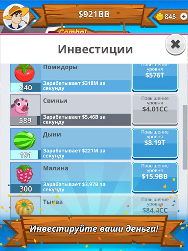 Тратьте ваши миллионы на увеличение загонов и улучшение грядок, если вы преуспеете, то привлечете внимание мега-инвесторов!
