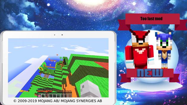 Too fast mod includes a sonic style parkour map. The goal is to quickly go through all the obstacles and reach the top. When we hear speed, we immediately think about the flash, but some people think about the game of Sega Sonic, in which the superhero was a very fast hedgehog, saving the world and collecting rings for speed. Now there are modern buildings and houses on which you can jump, and this map includes a huge number of ponds and other reasons to use the power of a hedgehog. On the territory of trampolines, teleport sectors, ponds - all this you can fly very quickly with the capabilities of Sonic.