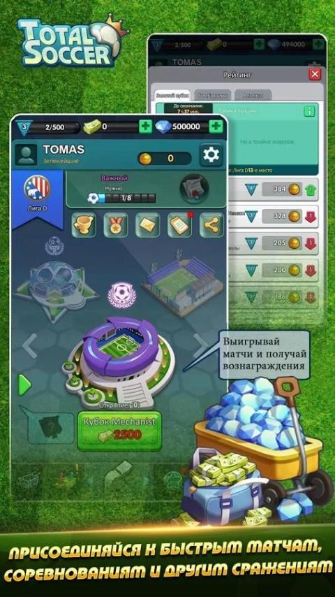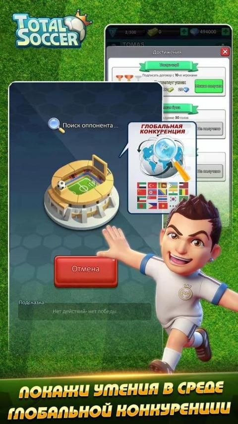 Глобальный кроссплатформенный матчмейкинг с простейшими действиями, где каждая победа приносит новые шансы для развития потенциала вашего клуба. Но, быстрые футбольные матчи- это только начало. Принимайте участие в крупных турнирах, лигах и других специальных мероприятиях, где вы можете выиграть по-крупному. Что еще нужно, чтобы быть лучшим в игре? Найдите Total Soccer!