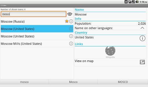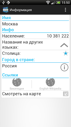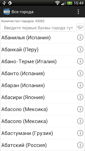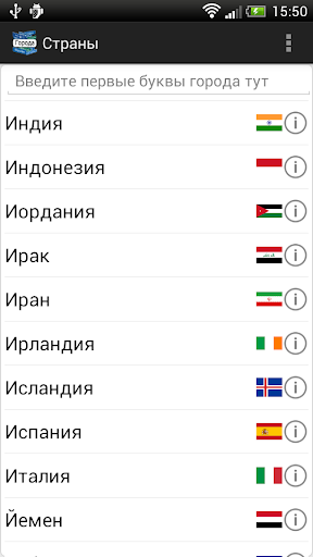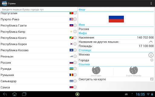 В программу встроен удобный оффллайн справочник, который позволит быстро найти информацию по любому городу или стране.