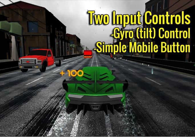 - Высокая скорость гоночного автомобиля как с помощью кнопки и контроля наклона