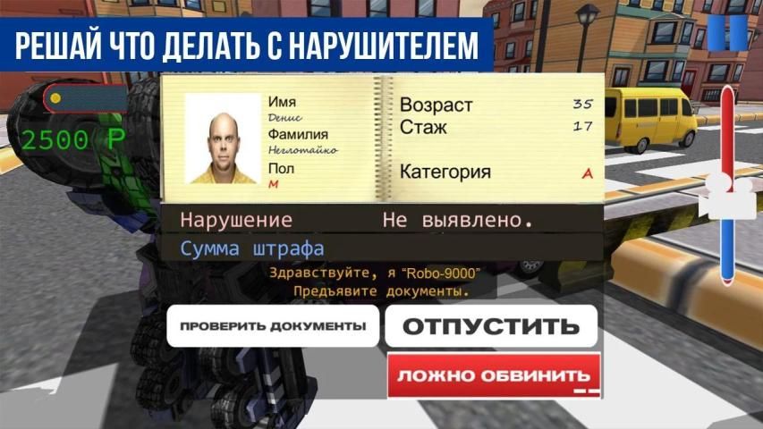 В симуляторе у вас будет несколько путей становления лучшим гаишником города. Вы можете строго следовать законам, ловить всех преступников, не брать взятки и стать грозой всех криминальных элементов. Так вы заручитесь поддержкой честных людей и получите новые возможности, продвигаясь по службе в ДПС. Но вам придется отказываться от всех выгодных предложений преступников и терять возможность быстро развить своего футуристического робота X Ray. А это может повлиять на ваш результат борьбы с их новыми сюрпризами. Если же упускать выгодные сделки не в ваших правилах, вы можете примкнуть к криминальным силам и даже быть двойным агентом. Помогайте в преступлениях, срывайте обвалы ДПС, берите взятки и даже мешайте другим гаишникам. Комбинируйте все возможности, выбирайте свой собственный стиль работы и станьте лучшим футуристическим роботом города!