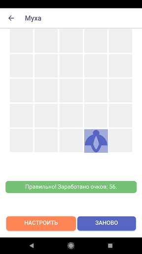 - "Муха" - способствует развитию концентрации внимания. Просто выбирайте комфортные для вас настройки (количество передвижений, скорость и размер поля) и упражняйтесь. Не забывайте со временем усложнять задачу, чтобы добиться еще больших результатов в концентрации внимания.