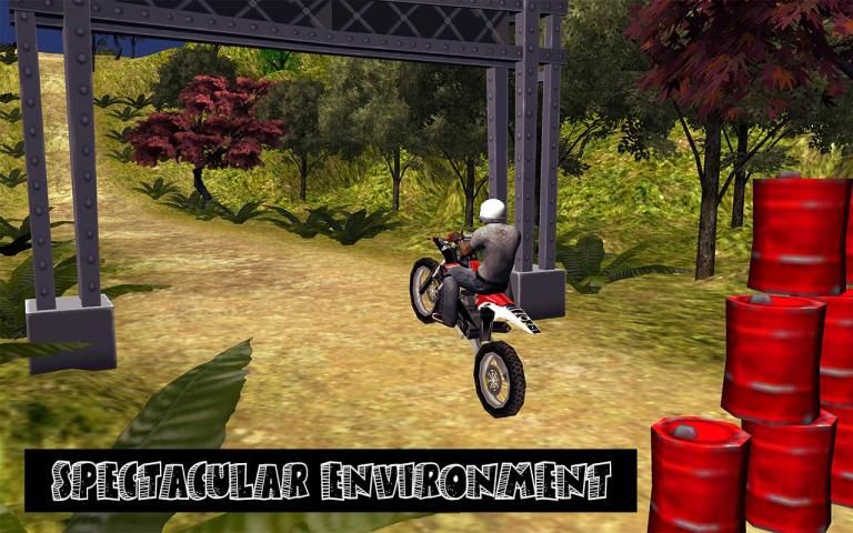 Trial Extreme Racing предлагает множество уникальных треков в местности - лес, пустыни, Вулкан и Арктике. Каждый новый ландшафт отличается по сложности, каждый из которых имеет уникальные особенности, трамплины, прыжки и препятствия! Скользкий лед останавливает вас от резкого торможения, плывун замедлит Вас, и если вы упадете в лаву, ваш велосипед будет гореть!