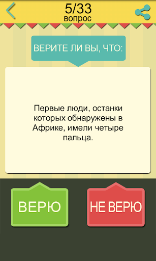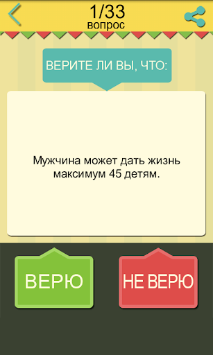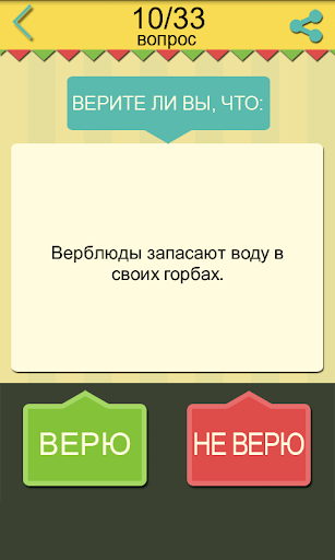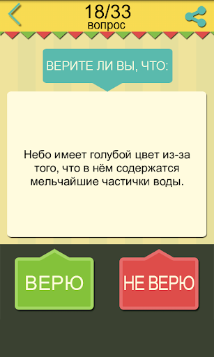 Хотите проверить Вашу эрудицию и посоревноваться в знаниях с другими игроками? Если да, то предлагаем Вашему вниманию игру Верю - Не верю.