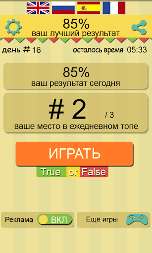 Данная игра выступает одновременно как тест Ваших знаний, так и как соревнование с игроками со всего мира.