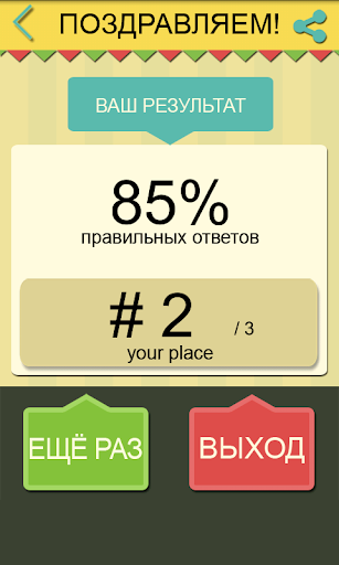 хвастайтесь Вашими результатами в любимых социальных сетях! Ответьте правильно на все вопросы и станьте №1.