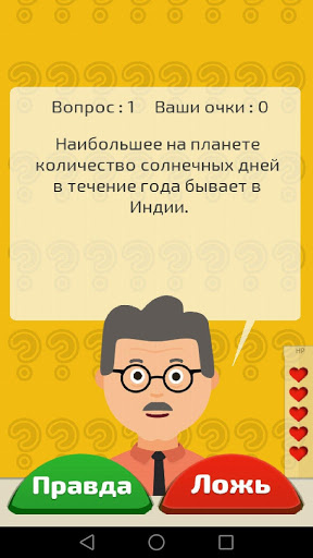 Мы подготовили для Вас множество удивительных фактов в популярных категориях. Хотите проверить свои знания в таких сферах, как популярные люди, география или животные? Тогда наша игра Вам безусловно придется по вкусу! Развивайте интуицию, ведь во время игры игроку часто предстоит угадывать, что же перед ним - правда или вымысел. Мы уверены, что Вам будет очень интересно проверить, какие удивительные факты правдивы на самом деле!