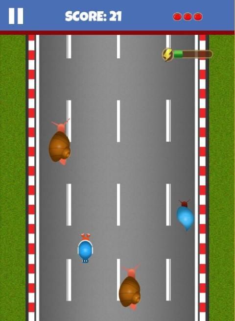 Работать на полной скорости по шоссе с Turbo Улитка. Вы должны избежать столкновения других конкурентов улиток. Возьмите помидоры, чтобы зарядиться жизнь и преодолеть все записи ваших друзей.