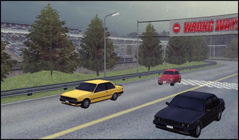 - 3 разные камеры (Нормальный, кокпит камера и камера будет смотреть назад во время гонки)