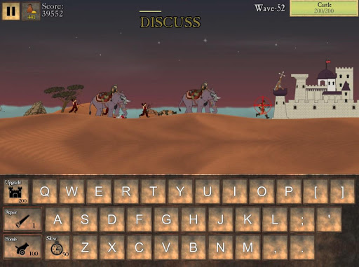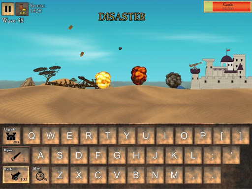 Каждый раз, когда вы пишете показанное слово, баллиста стреляет в противника. Враги продолжают волноваться, и вам нужно быстро писать слова. Вы можете обновить и восстановить свой замок, если у него низкий уровень здоровья. Есть также две силы, которые могут помочь вам, когда вы испытываете трудности.
