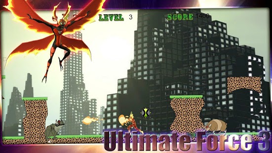 Ben10 Ultimate Force 3 is an action packed platform based fighting game. In this game, you have to play as Ben 10/Fireman and fight against all odds on your way to reach the endpoint in one piece for qualifying to the next level. To move around Ben 10 and Fireman you have to use your arrow keys, to attack your enemies press space bar. There are gadgets that you need to grab to transform from Ben 10 Fireman or from Fireman to Ben 10. Kill all enemies on your way before they attack and kill you. Move around carefully without falling from the ramps. Clear all exciting 15 levels and enjoy the game.