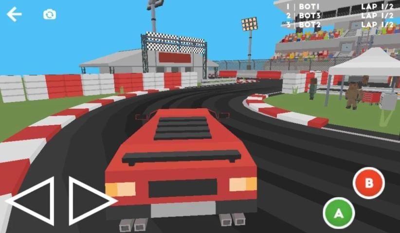 Запуск гонки с ботами или друзьями в Интернете. Вы можете выбрать один из 6 доступных автомобилей и гонки на 3-х различных треков.