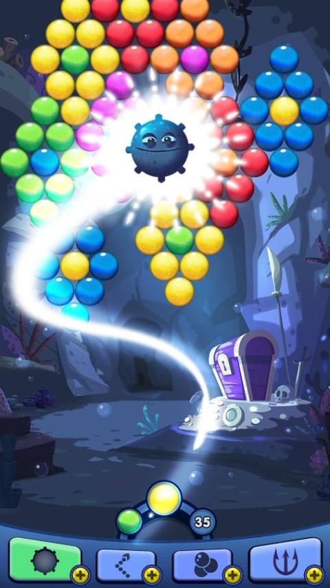 * Для того, чтобы получить супер-Trident вы должны поп 7 пузырьков в ряд. Супер-трезубец очистит путь к победе. * Для того, чтобы получить водно-Mine вам нужно отказаться от 10 пузырьков или больше. Вода-шахтное создаст большой взрыв и принять окружающие пузырьки.