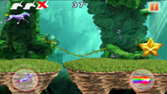The unicorn Dash Run in the jungle on the sky.Keeping jump and running faster to obtain higher score.