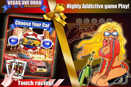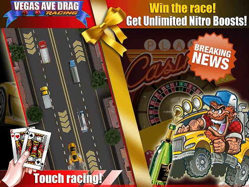 Las Vegas Strip Drag Race for Money : Play your cards right to win the hot car race. Winner! Las Vegas Strip Drag Race for Money NEW game. Race like a pro on the vegas strip of money Fasten your seat belt, get ready and step on it! Don't stop for anything while you speed down the road! This adrenaline pumped game is going to keep you playing for countless hours! Beautifly done cars, exciting gameplay and realistic enviroment is a guarantee that this will be a long lasting game. It's designed for people of all ages and it's simply a winner. Customize your ride, unlock features and win the hottest and most challenging races in Los Angeles! Nitro boosts, burnt tires, high speeds is what this game is made of! Features: Remarkable graphics. Cool cars. Special IAP Pro mode - Use this and never die on the road. Download this game today and see what drag racing is all about! You will love it so come say hello on our facebook page where all the other race drivers hangout!