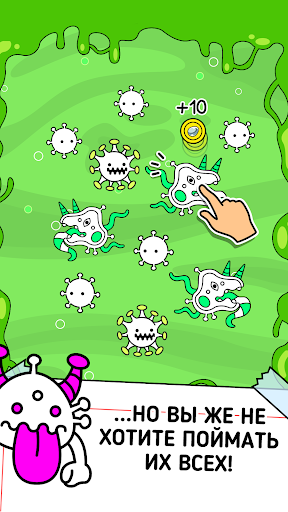 👾Перетаскивайте похожие друг на друга вирусы, чтобы создать новые пронырливые существа