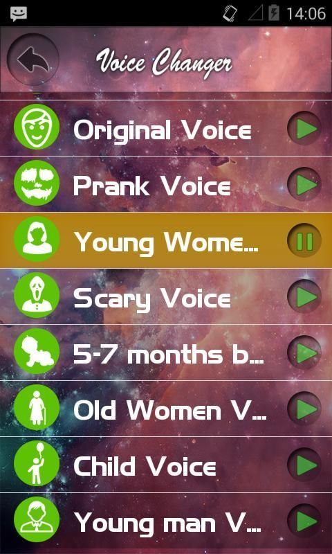 Просто запишите свой голос с помощью Голосовой чейнджер и слушать для себя, как ты говоришь, в разного рода голоса. Все записанные звуки можно легко проверить позже.