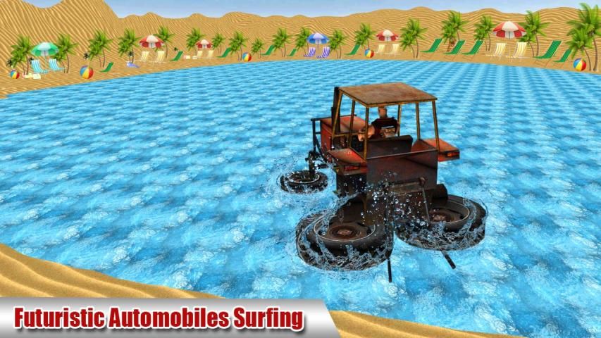 Наслаждайтесь океанскими аттракционами с плавающими водными лодками в Ancient Water Surfer - Красивый пляжный автомобиль.