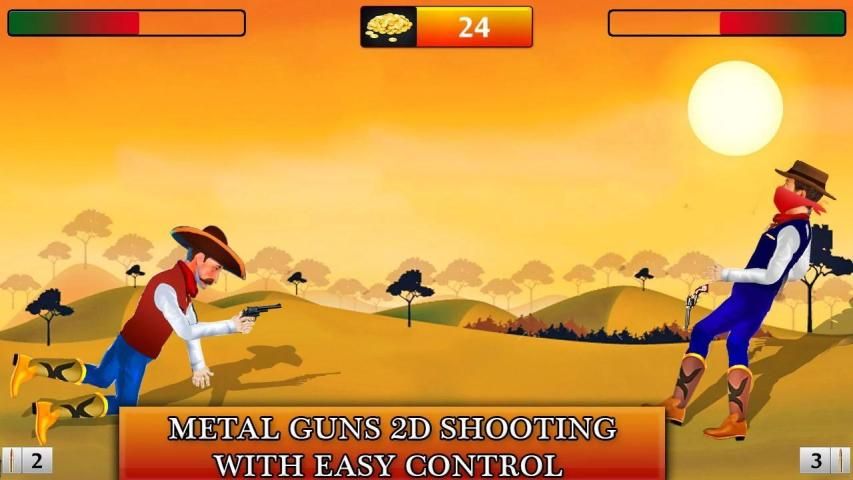Западные ковбойские пушки дуэль - поединок между двумя людьми, переместите свои перекрестие в безопасную зону, чтобы начать обратный отсчет. Исследовать поистине огромные и открытые дикие западные техасы, полные ковбоев, бандитов-вне закона и многое другое. Лицом к врагу, бандитам-преступникам и злым стрелкам, после сигнала, быстро выстроитесь в очередь со своим злым оружейником и первыми стреляйте!