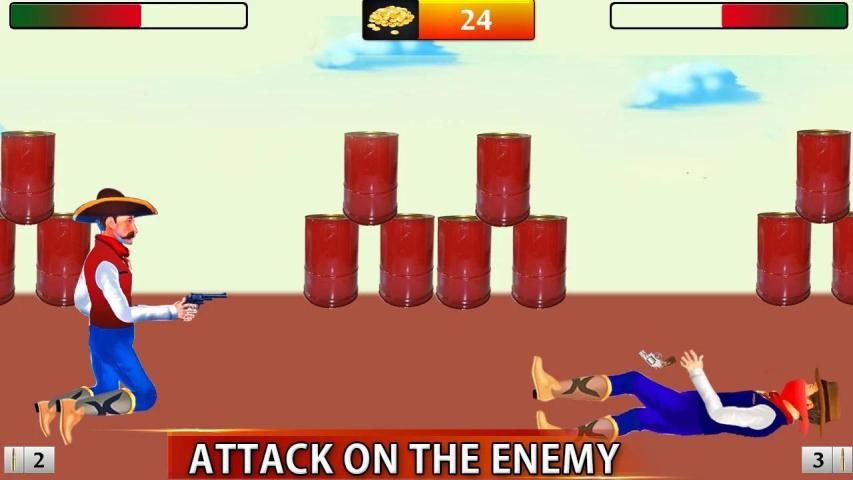 Принять участие в двух дуэлянтах, быть первым в съемках и продемонстрировать навыки аутсайдеров вне закона. Враг игрока может быть компьютером или другим человеком, неестественными врагами в этой приключенческой игре шутера от третьего лица. Главная цель игры с ковбойской стрельбой - каждый раз стрелять в противника и оставаться в живых, решающим является скорость реакции и точность игроков. Играйте в битву с диким западным ковбойским оружием и отправляйте свои смертельные навыки стрельбы на следующий уровень.