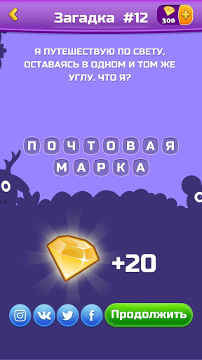 Хитрые загадки с ответами на русском всегда были популярны, и сложные загадки что я № 1, когда дело доходит до головоломок. Некоторые люди говорят, что хитрые загадки с подвохом, ребусы и шарады заставляют мозг работать быстрее и, следовательно, коэффициент интеллекта повышается. Ну, мы не можем быть уверены в этом, но гарантируем, что отгадывать сложные русские загадки заставит время лететь. Будь креативным и думай логически – это все что надо, чтобы отгадывать загадки. Скачай Загадки с Ответами на Русском: Что я? и проверь, с какой быстротой ты можешь добиться до отгадок.