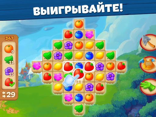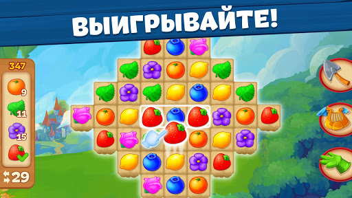 Совмещайте 3 фрукта или овоща, чтобы проходить захватывающие уровни. Постройте ферму мечты, создавайте свой стиль. Собирайте урожай и получайте награды.