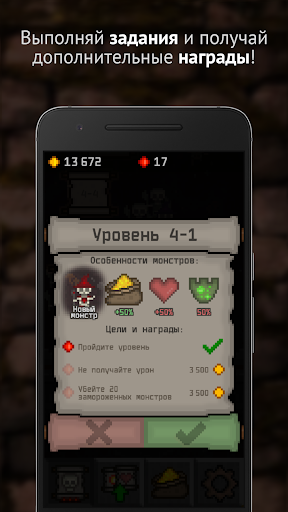 • Бесконечное количество уровней! Чем дальше ты пройдешь, тем сильнее монстры и больше награда!
