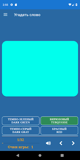 Вы можете прослушать произношение слова после ответа, нажав на значок аудио.