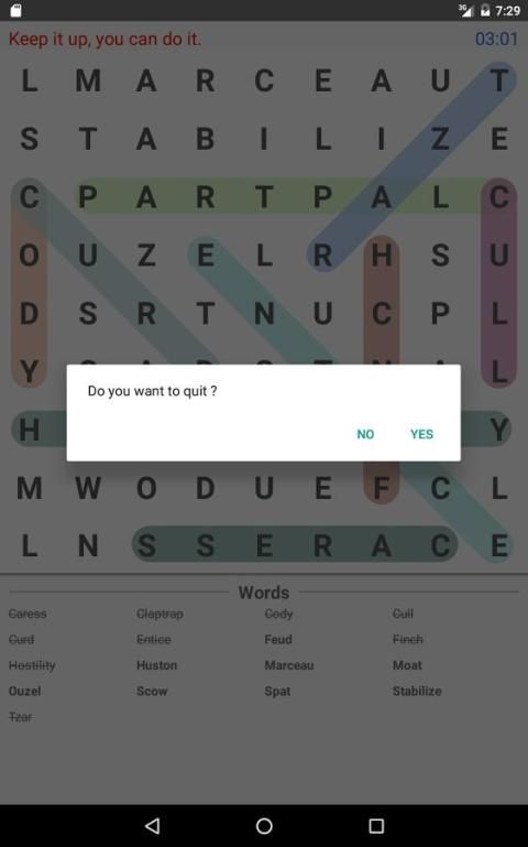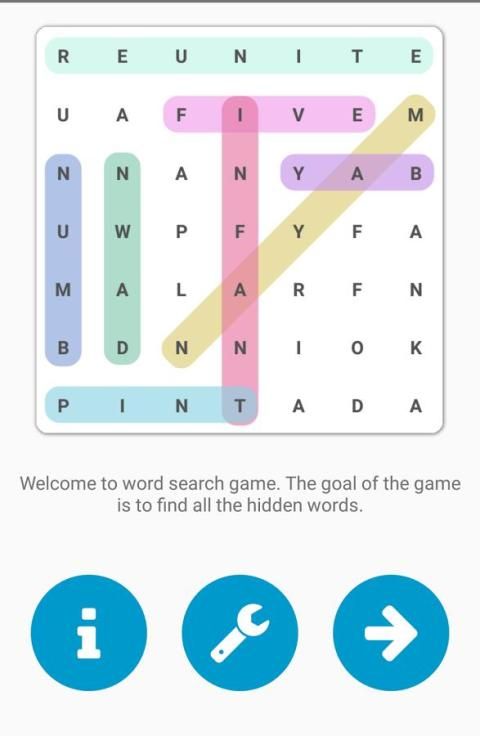 вы получите список слов в нижней части (портрет) или правой части (ландшафтном) и вам нужно найти слова в игровом поле.