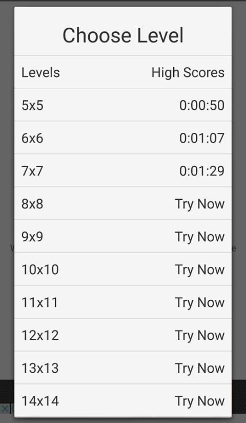 Различный уровень сеток, доступных от 5х5 до 15х15 означает, от детей до подросткового, молодых и стариков.