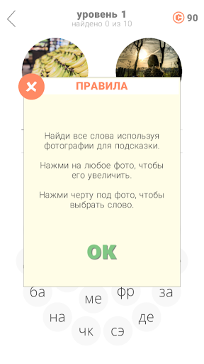 Каждая фотография содержит ключ к разгадке. Нажми на фото, чтобы увеличить его, а затем найди слово, которое имеет что-то общее с фото. Иногда ответы вполне очевидны, но попадаются и загадки посложнее. Попробуй отгадать все слова!